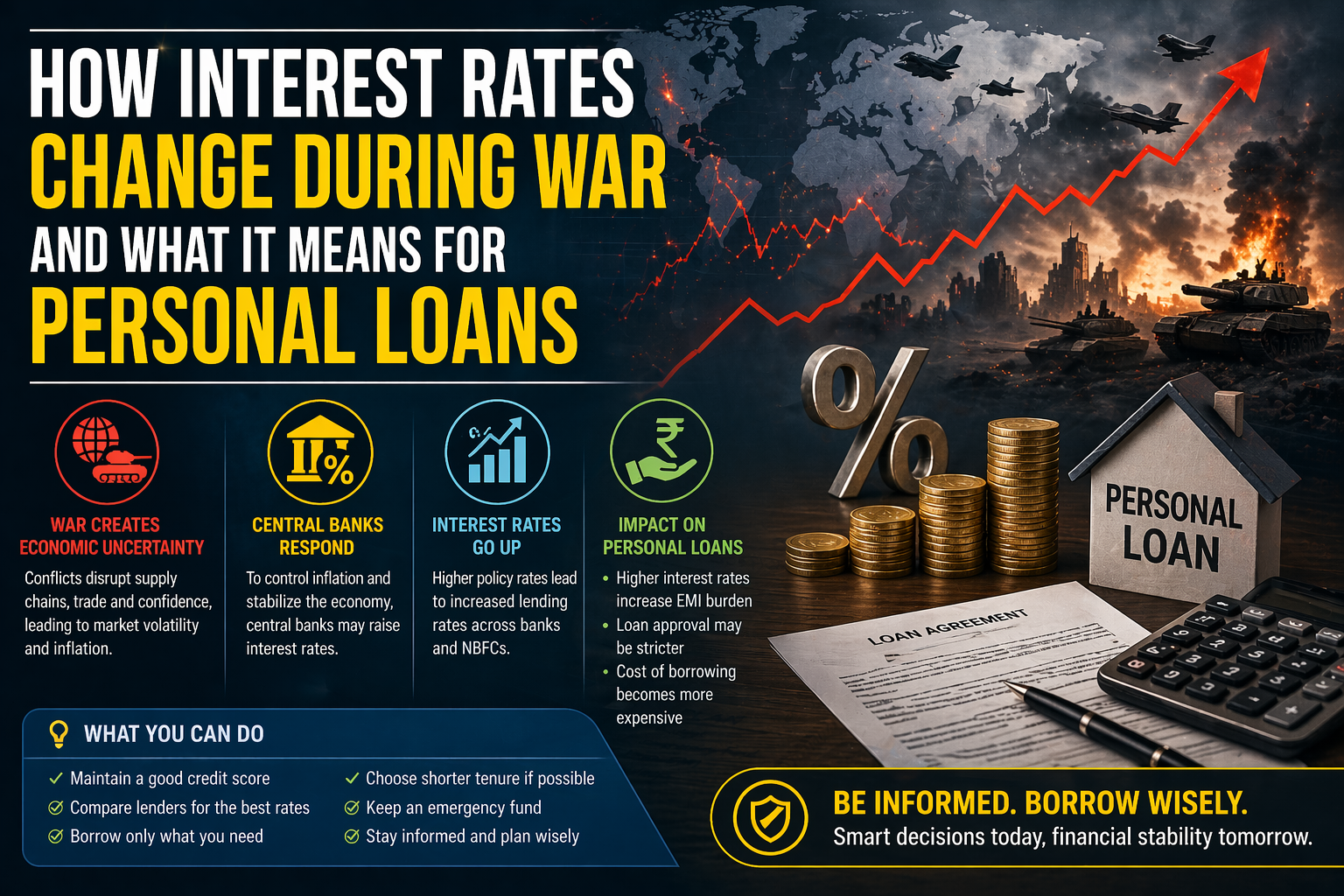 Geopolitical wars and conflicts tend to upset economies causing inflation, currency variations, and central bank policy changes. Among the short-term financial effects is the effect on interest rates that directly influences the cost of borrowing, including personal loans. Such changes can be understood to enable the borrowers to make sound financial decisions during uncertainties.